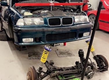 This black-on-black M3 coupe is a near-pristine example of automotive excellence, featuring a stunning set of Style 24 wheels and an impressive pair of Vader seats. We gave this beauty the attention it deserves, performing a complete refresh of the cooling and belt drive systems, along with a comprehensive overhaul of the front and rear suspension. Additionally, chassis reinforcements were expertly welded in-house by Jerry from Fish Fab. To top it all off, we dialed in a custom alignment designed to maximize cornering grip and handling performance.