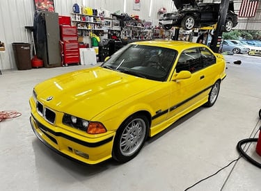 Dakar Yellow truly is Da “Kar” for us. This vibrant first-year E36 M3 spent most of its life under the relentless Texas sun, leaving its paint and interior weathered from years of exposure. Fortunately for Jeffrey, the team at RMUSA stepped in to bring this gem back to life. With meticulous paint correction, interior restoration, and mechanical care, we gave this classic the attention it deserved to shine once again.
